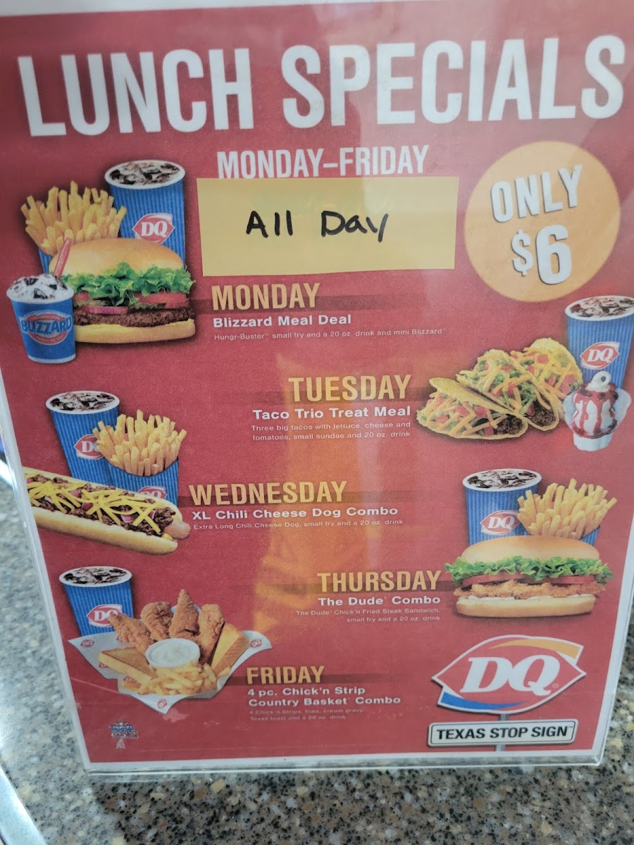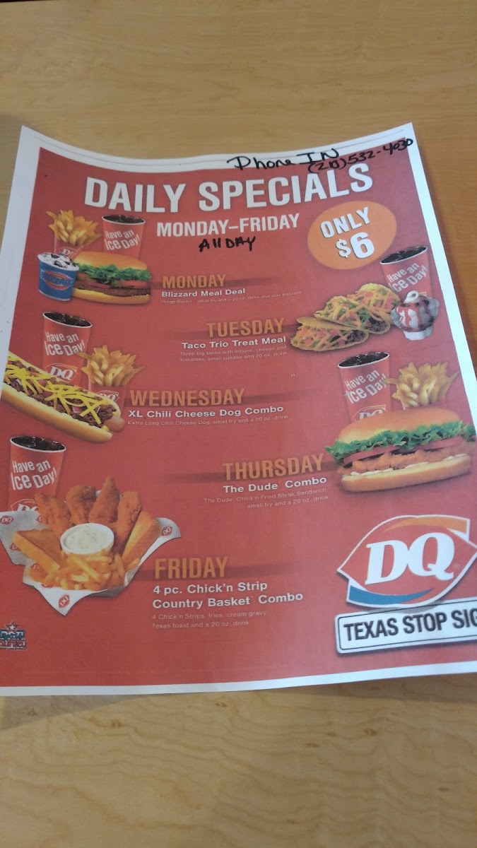 Dairy Queen in San Antonio offers a delightful blend of classic fast food and iconic ice cream treats. Their menu highlights the Steak Finger Country Basket®, featuring crispy steak fingers paired with golden fries, Texas toast, and creamy gravy—a comforting Southern staple. Fans of bold flavors will appreciate the Honey BBQ Chicken Strip Country Basket®, where tender chicken strips are tossed in a smoky honey BBQ sauce, accompanied by ranch and fries for dipping. For lighter bites, the Texas Brand Taco® and the hearty Extra Long Chili Cheese Dog serve up satisfying flavors with savory beef, melted cheddar, and tangy chili.